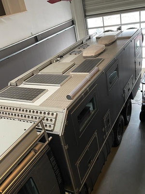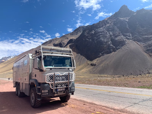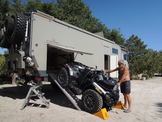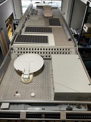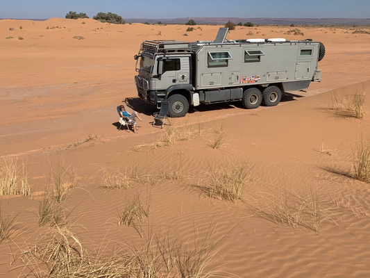 Points forts : • Cabine : Actros Mobil (Action Mobil) – construction en sandwich, env. 5,8 m de longueur, 2,5 m de largeur, 2,3 m de hauteur, isolation de haute qualité, nombreux espaces de rangement, grands réservoirs (diesel et eau). • Système de batteries et alimentation : solaire, onduleur, chargeur booster, réseau 230 V/12 V/24 V, raccordement au courant secteur. • Chauffage et climatisation : système multicircuit avec eau chaude, chauffage à air, chauffe-eau, climatisation. • Équipement électrique : antenne satellite, TV, cuisine, réfrigérateur, éclairage LED intérieur, éclairage LED extérieur, prises 230 V/12 V. • Intérieur confortable : coin salon convivial, salle de bain avec douche et WC, cuisine, grands lits, matériaux de haute qualité. • Châssis et transmission : MAN TGS 33.480 6x6, transmission intégrale, 480 ch, boîte de vitesses à démultiplication, différentiels à blocage, grands pneus tout-terrain Michelin XZL 16.00 R20, extrêmement tout-terrain. • Autonomie en déplacement : grands réservoirs diesel et d'eau potable (env. 900 l de diesel, 400 l d'eau potable), système d'air comprimé, support pour roue de secours. Support moto/quad.Particularités :• Très robuste, testé pour des voyages autour du monde (notamment en Afrique, Amérique du Sud).• En excellent état, sans accident, prêt à voyager immédiatement.• Optionnel : Quad Can-Am Outlander 800
